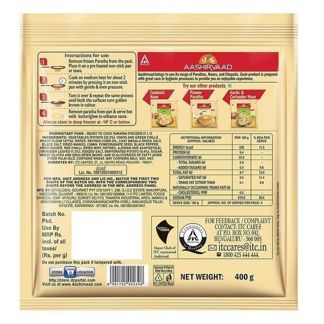Aashirvaad Ready To Cook Aloo Paratha Net Qty: 400 g