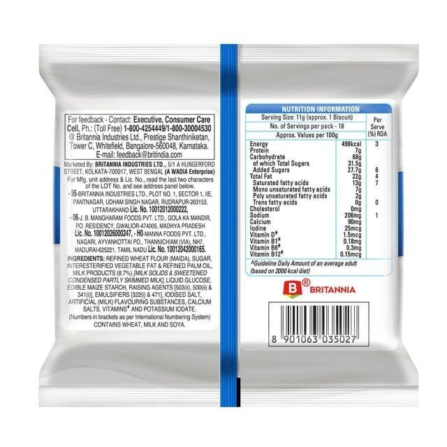 Artificial Flavour (Ilk), Calcium Salt, Iodised Salt, Milk Solids, Raising Agents, Refined Oil, Refined Wheat Flour (Maida), Sugar, Vitamins, Invert Sugar Syrup