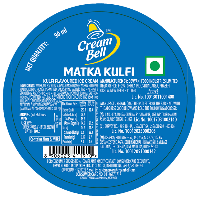 Cream Bell Matka Kulfi Net Qty: 90 ml