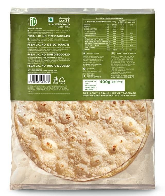 Whole Wheat Chapati (10 pieces) Net Qty: 400 g